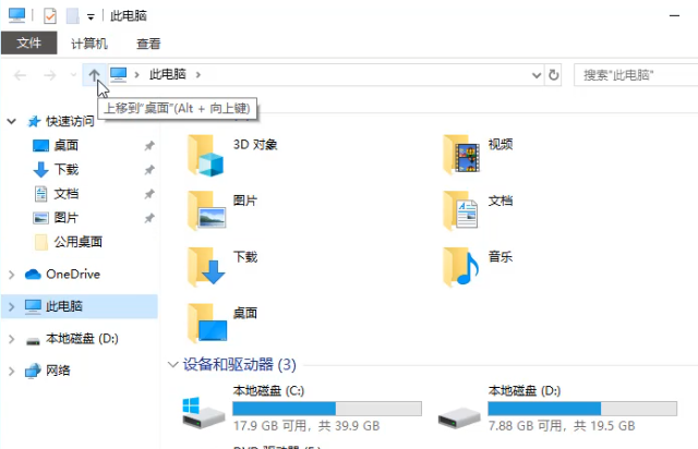 1、打开“此电脑”,点击路径栏左侧的“↑”按钮。