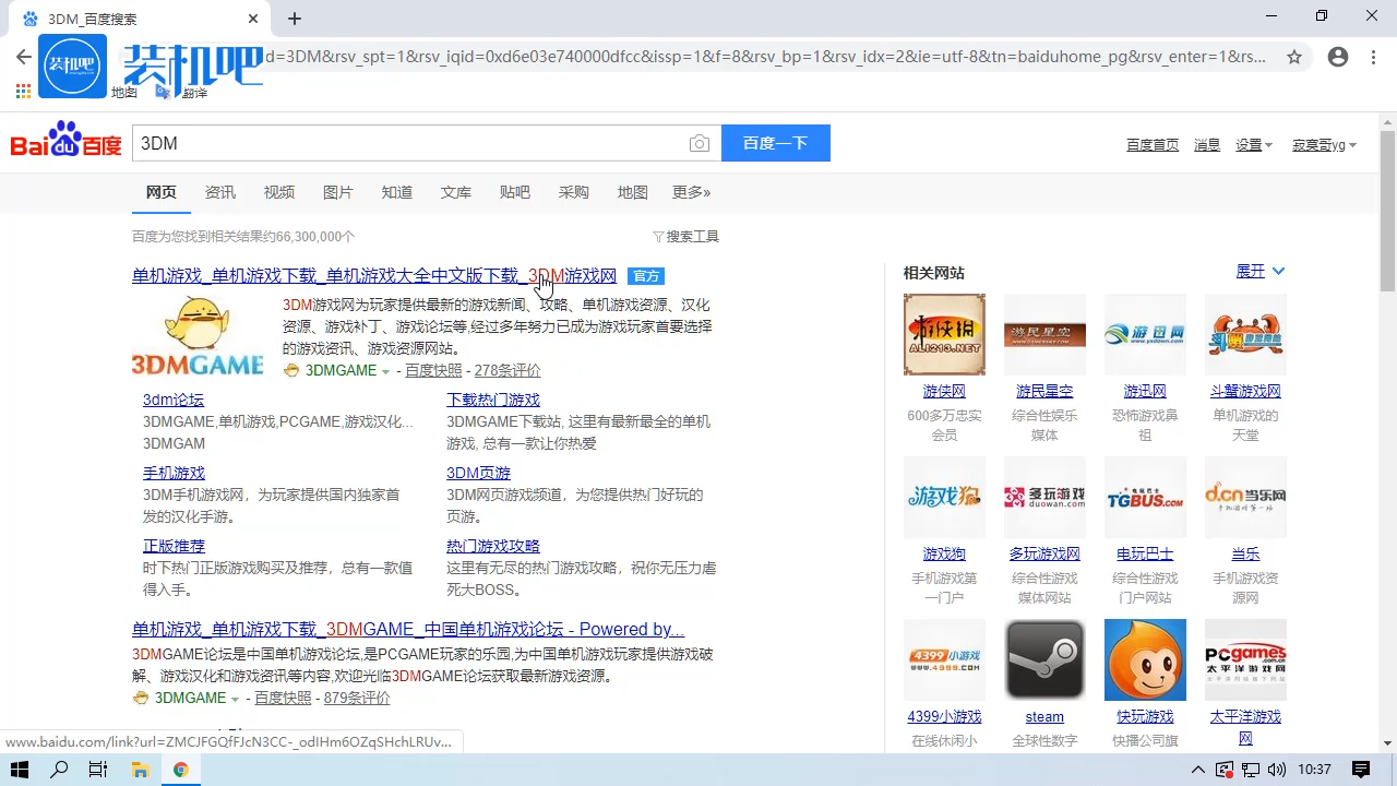 1、打开百度,搜索“3DM”进入3DM游戏网。