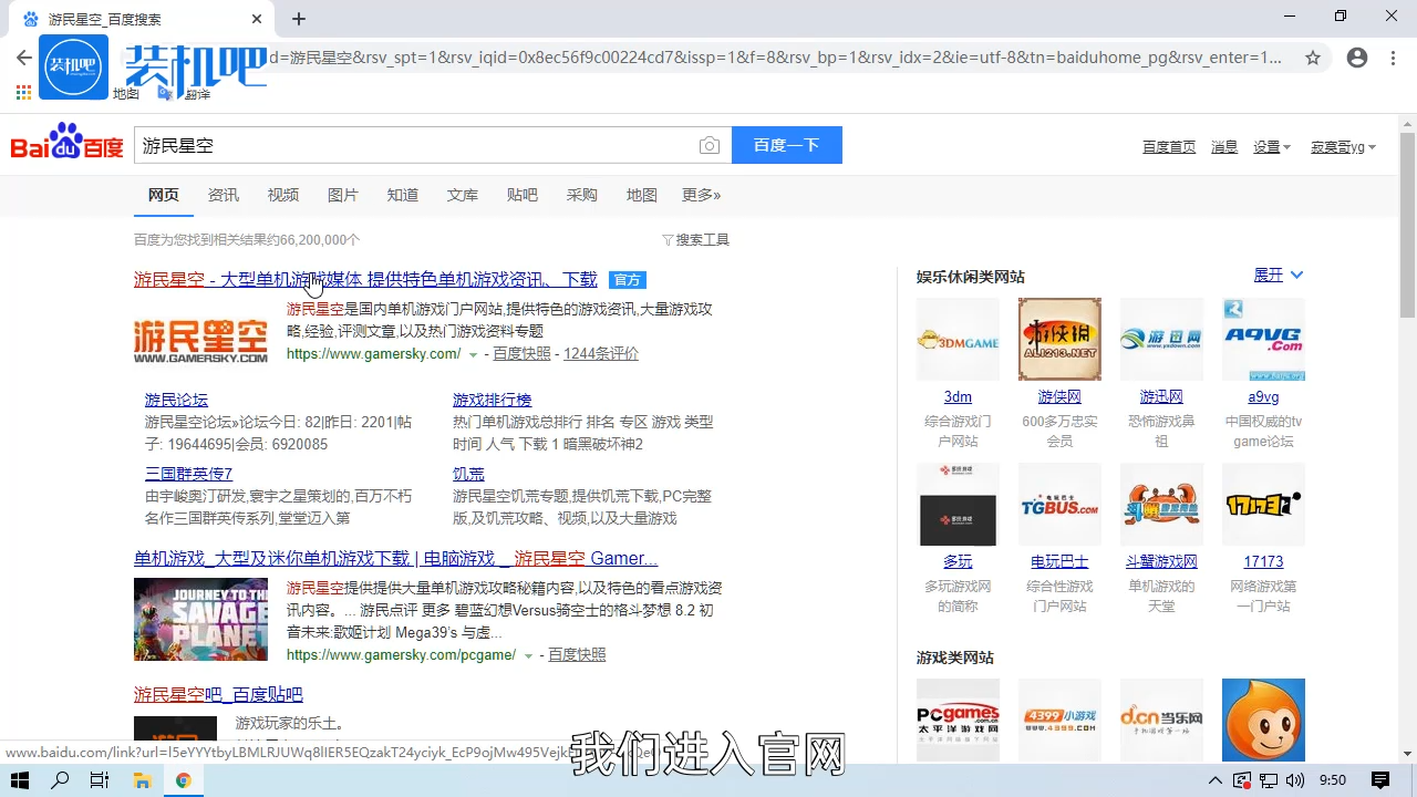 1、百度搜索“游民星空”,进入游民星空官网。
