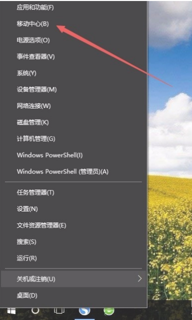 1、在Windows10系统桌面,右键点击桌面左下角的开始按钮,在弹出菜单中选择“移动中心”菜单项。