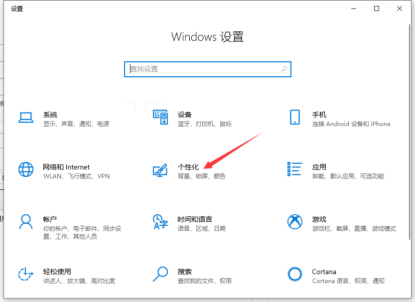 1、电脑快捷键“win+i”打开设置之后点击个性化。