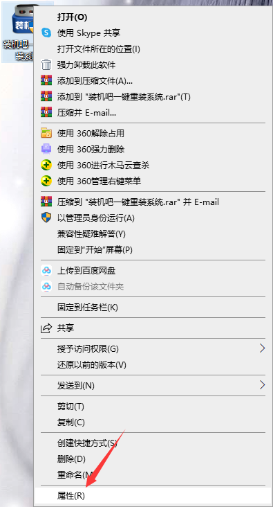 1、右键选择需要打开的软件程序文件,选择“属性”