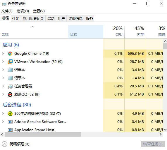 1、使用快捷键【Ctrl+Shift+Esc】会弹出任务管理器窗口.