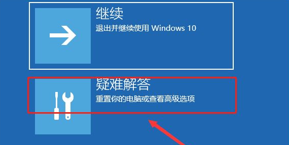 1、强制重启电脑3次,这时候就会看到对应的蓝色界面,直接选择疑难解答进入。