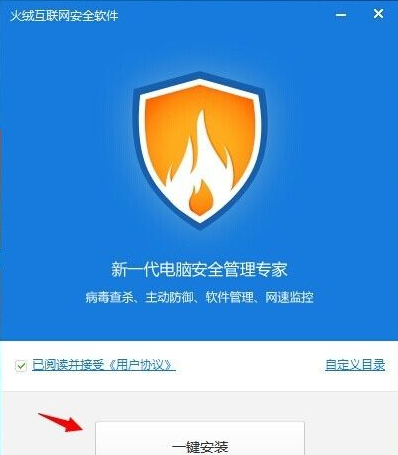 1、首先去官方网站上下载火绒安全软件到电脑,再安装该软件,由于比较小可以安装到电脑的任何一个地方。
