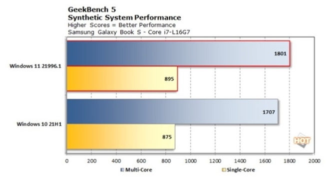 Win11相比Win10,在多线程上有5.8%的优势,在单线程上则有2%的优势。