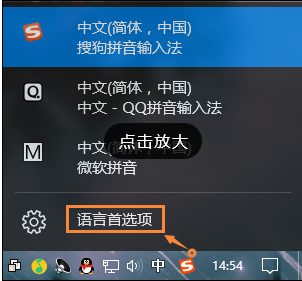 1、在任务栏的语言地方点击一下再点击语言首选项。