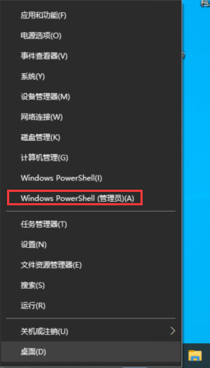 1.首先我们右键点击开始菜单,选择“windows power shell(管理员)”选项。