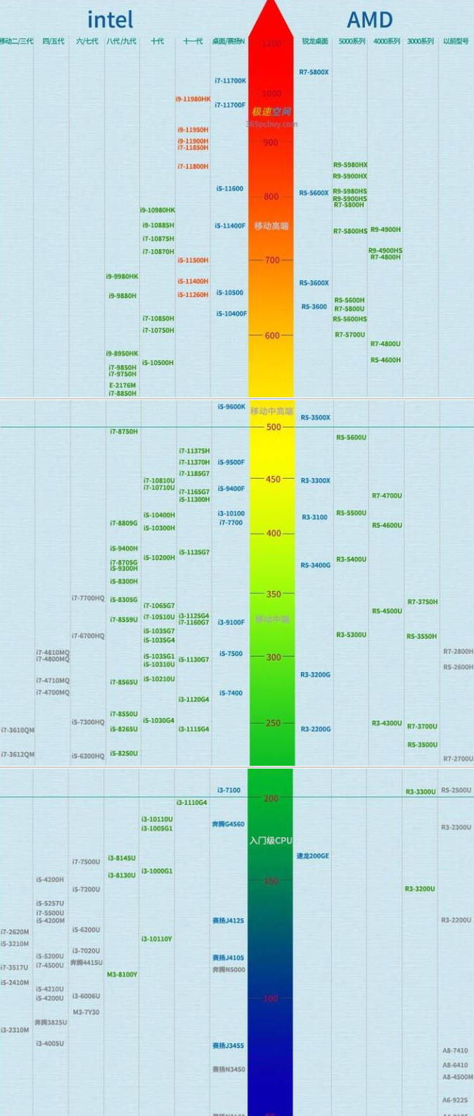 10月最新笔记本cpu排行天梯图的分享