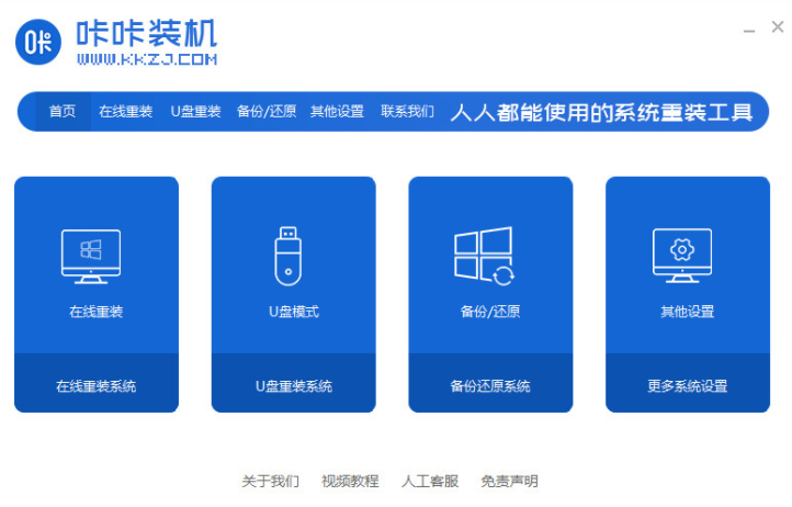 1.我们先打开电脑,按一下键盘上的“咔咔装机”一键重新装入系统软件,然后在“咔嚓机”一键重装系统软件下打开。
