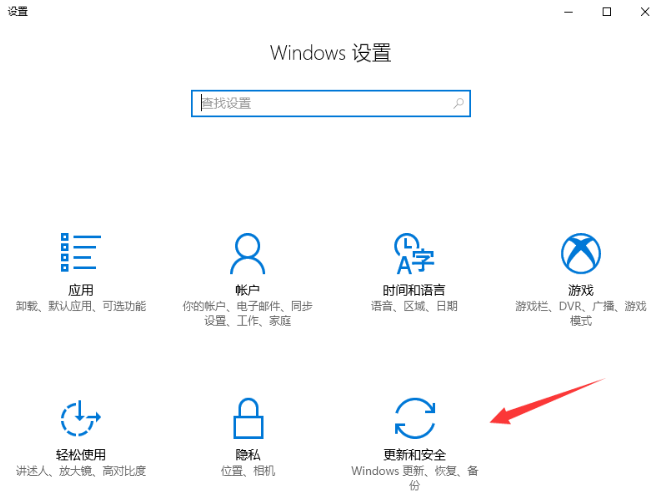 1.首先我们进入win10系统桌面,接着按键盘上的win+I键打开windows设置功能,选择更新和安全,进入下一步操作。