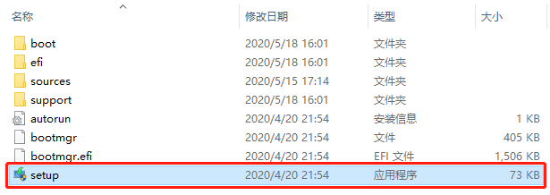 1.第一步我们需要在官方网站中把原版系统镜像文件下载到本地磁盘当中,除了c盘和桌面,都可以放,然后使用解压工具将其解压。解压完成之后我们打开文件夹中的一个叫setup的应用程序。