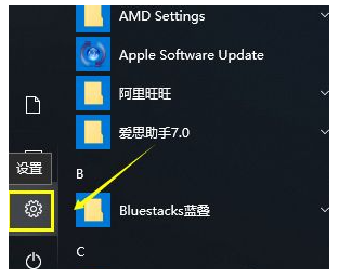 1.鼠标左键单击开始按钮,在开始菜单点击设置。