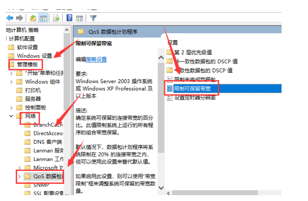 步骤二:按照下面的图示,从“管理模块”开始,然后是“网络”,然后是“Qos包调度程序”
