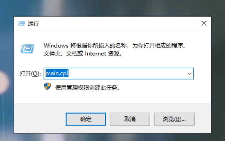 4.在计算机中设置。按下【win+R】组合快捷键,调出运行窗口,输入【main.cpl】,然后回车进入。
