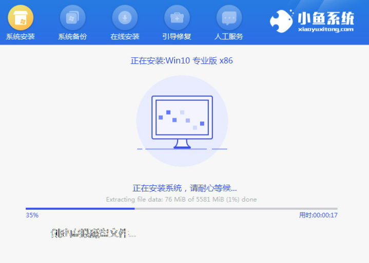6.此时装机工具会自动进行安装系统的操作,我们耐心等待安装完成。