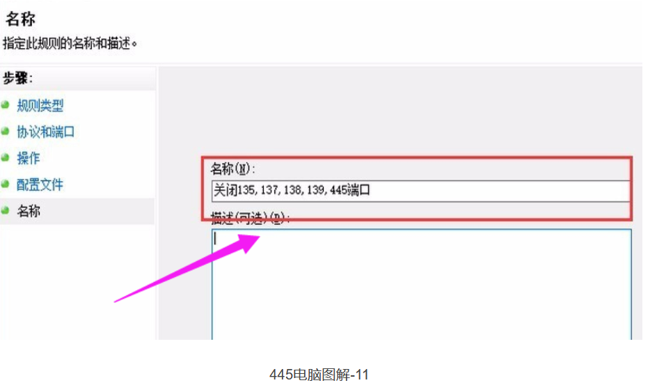 关闭135,137,138,139,445端口”,点击:完成
