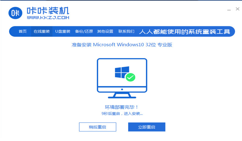 1、上网下载咔咔装机工具,点击在线重装系统。