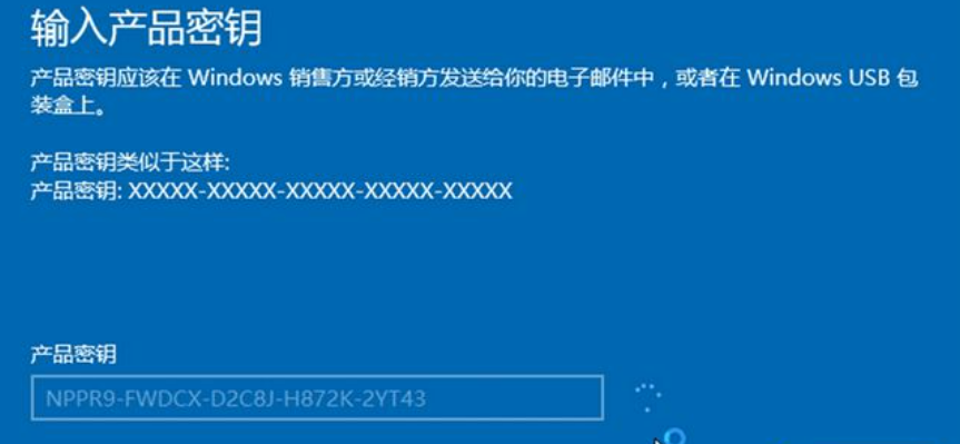 3、输入要升级的win10版本的产品密钥,要升级win10专业版就输入W269N-WFGWX-YVC9B-4J6C9-T83GX;