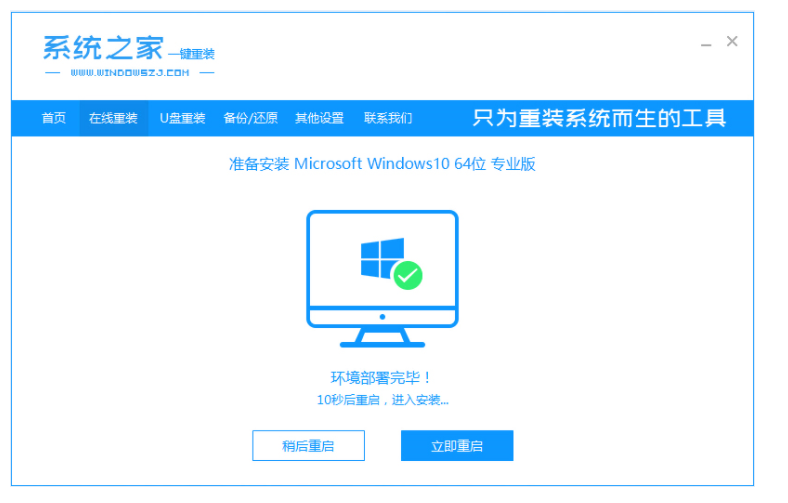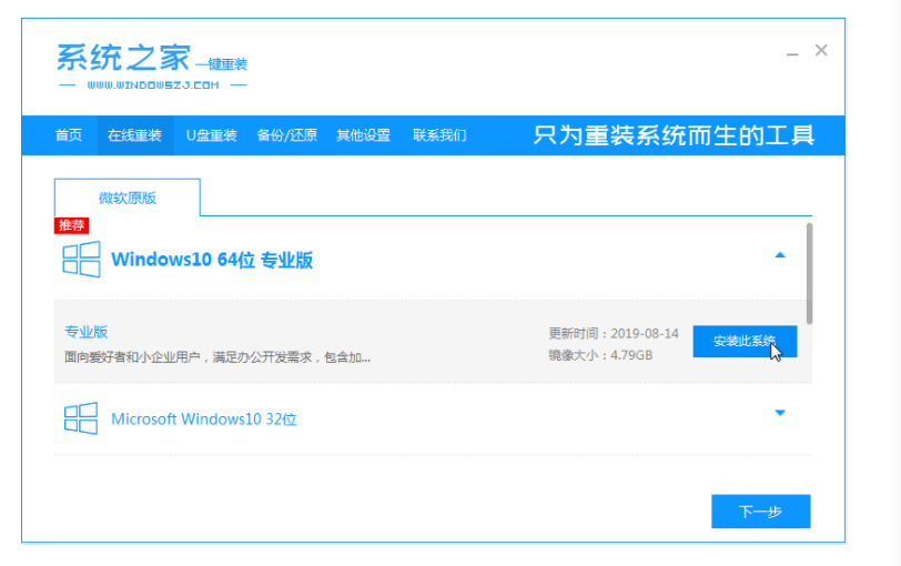 1、我们将系统之家重装软件下载好并打开。然后选择在线重装系统。
