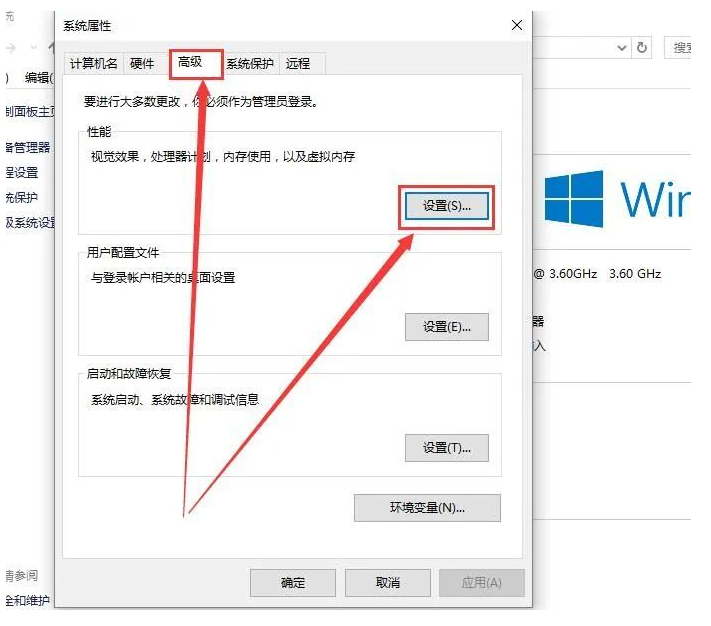 3、且换到高级界面,然后在性能这一栏,选择“设置”。