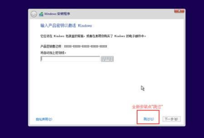 5、提示输入产品密钥,选择跳过。