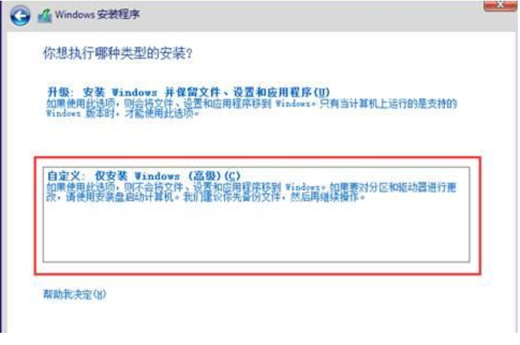7、选择升级或自定义,全新安装的用户选择“自定义”