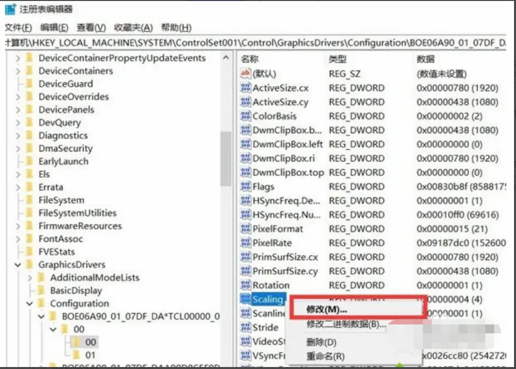 7、找到scaling右键点击,选择”修改“;