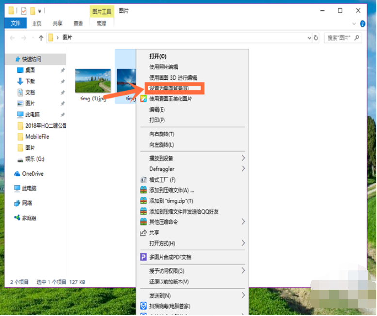 6、也可以直接在图片上设置,在图片上右击鼠标键,选择点击选项中的“设置为桌面背景”即可。