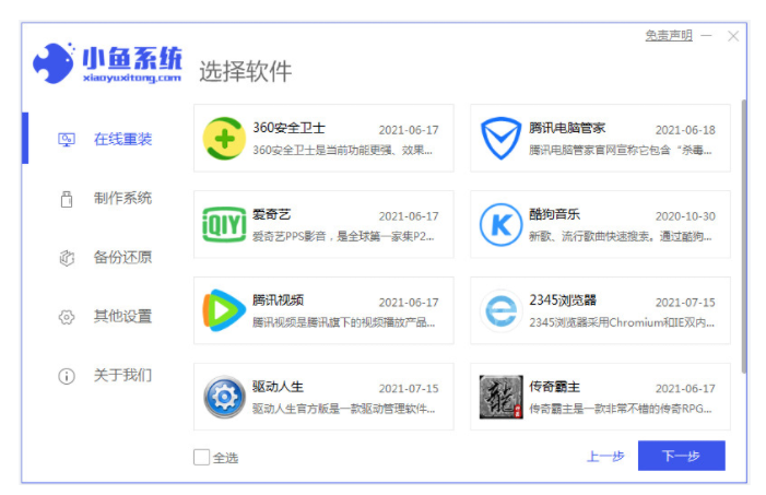 1、下载安装好小鱼一键重装系统工具打开,选择win10系统点击安装此系统。