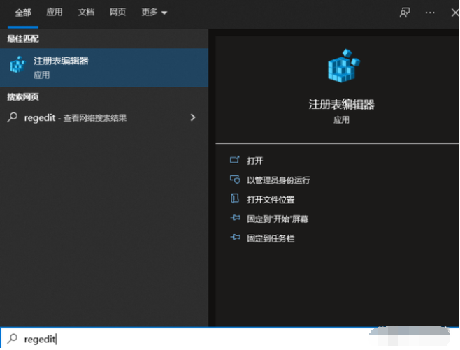 3、然后在win10电脑搜索栏中输入regedit命令,打开注册表编辑器界面。