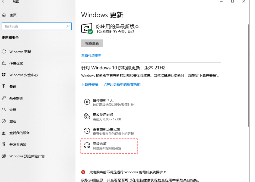 3. 在高级选项中,您可以将“更新选项”中项目全部关闭。