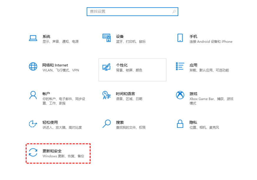 1. 按“Windows + I”键,打开Windows设置,再单击“更新和安全”。