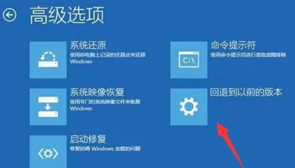 3、在高级启动下,点击回退到以前的版本,这时win10电脑会自动重启并进行回退操作。