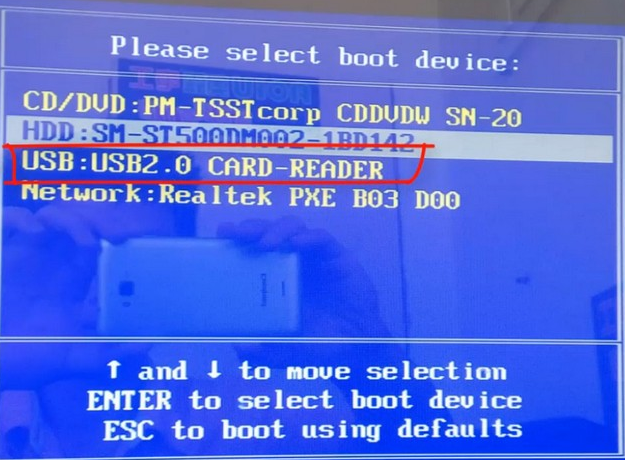 6、我们将电脑开机快速断续的按热键进入快速启动菜单,选择带usb的选项,按回车键进入PE选择页面即可。