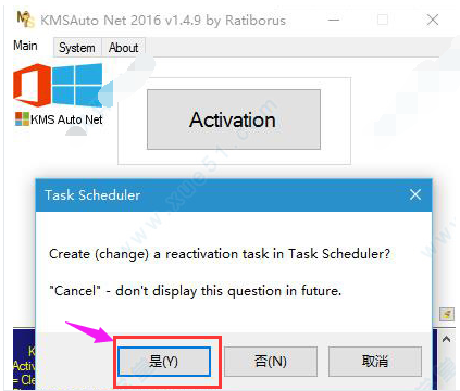 5、耐心等待,win10系统激活完成,弹出想要的提示框提示激活成功,点击是就可以啦。
