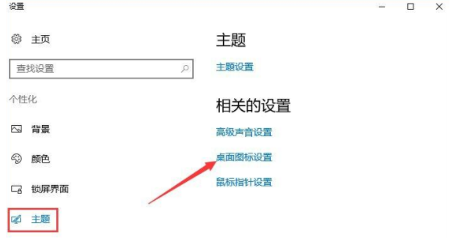2、在打开的页面中,点击左侧的“主题”功能,找到“桌面图标设置”的设置。