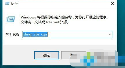 6、在打开的运行对话框中我们输入slmgr.vbs -xpr命令,点击确定。