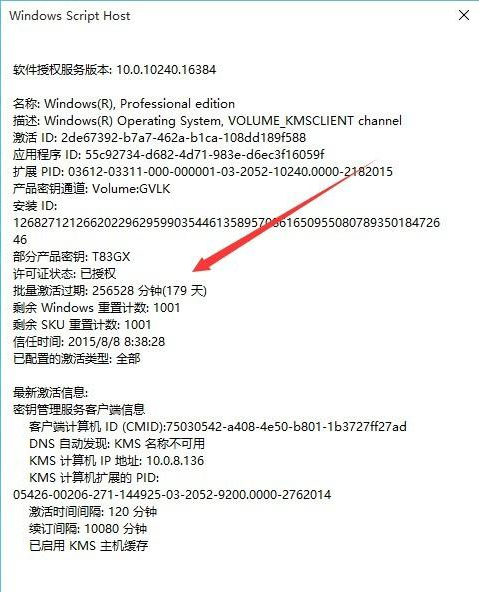 9、这时将会弹出激活的一些详细信息,我们可以通过该窗口界面了解激活的详细情况哦。