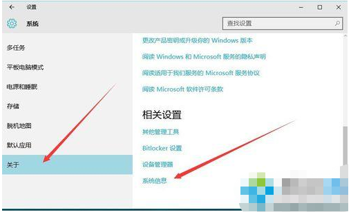 3、打开系统设置页面,在左边点击“关于”菜单项,再右向下拉,找到“系统信息”的链接,点击链接。