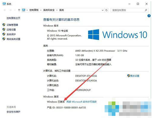 4、此时即可看到Windows 10的系统信息了,同时在Windows 激活一栏中也可以看到是否激活。