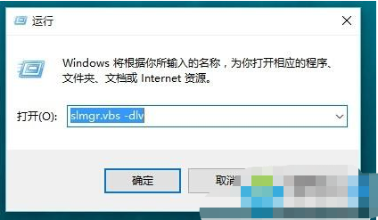 8、查看激活的详细信息,在运行对话框中需要输入“slmgr.vbs -dlv”,点击确定。