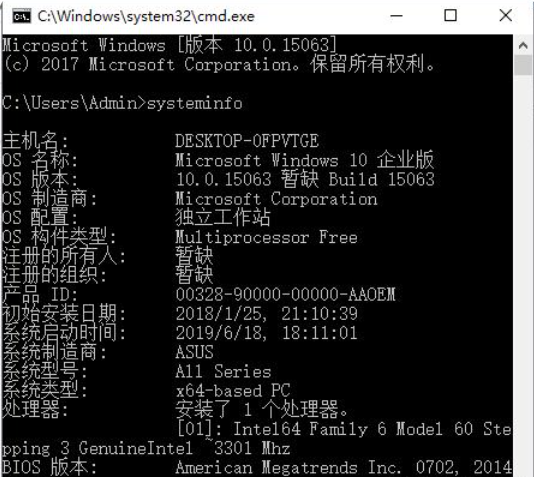 方法二:使用systeminfo命令
