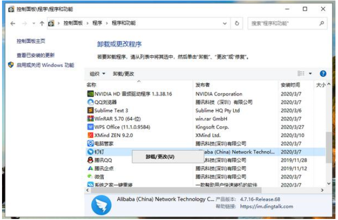 有些软件可能不常用或者基本不用了的,可以直接卸载掉(路径:进入win10的控制面板-程序-程序和功能界面,将多余的软件选中后鼠标右键选择卸载)。以释放空间。