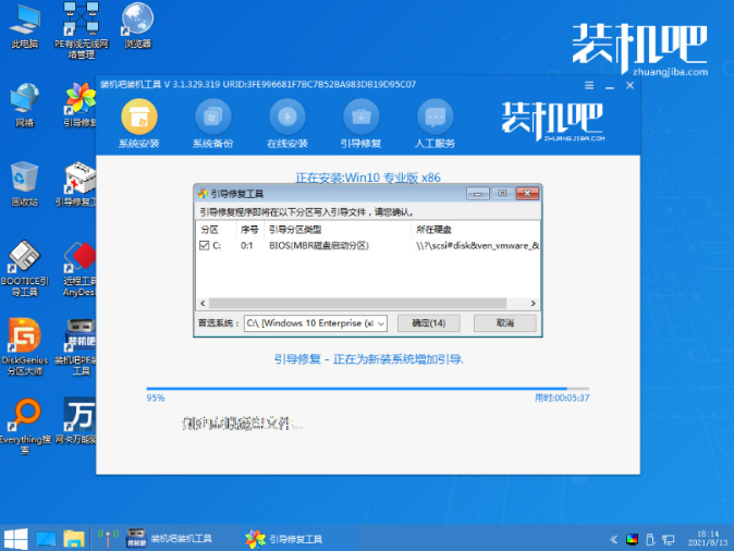 5、进入pe系统之后,装机吧工具将会自动开始安装win10系统。