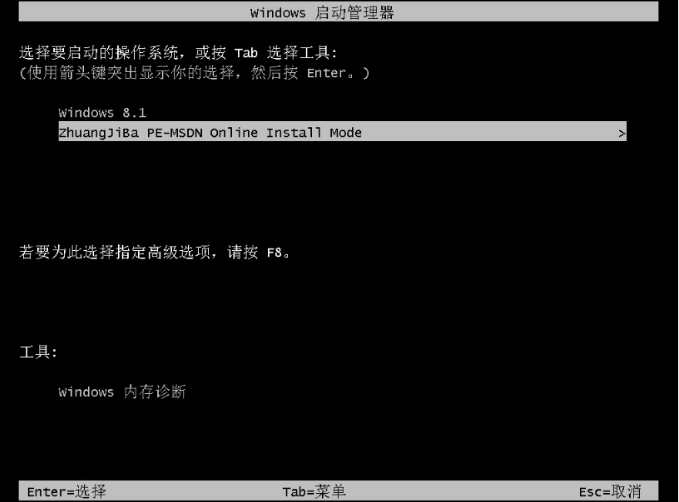 4、启动页面选择zhuangjiba pe-msdn项进入pe系统。