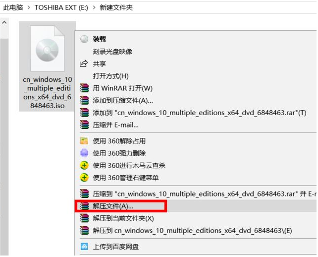 1、首先自行在网上搜索并下载官方的Win10 iso镜像文件,下载到电脑后解压。