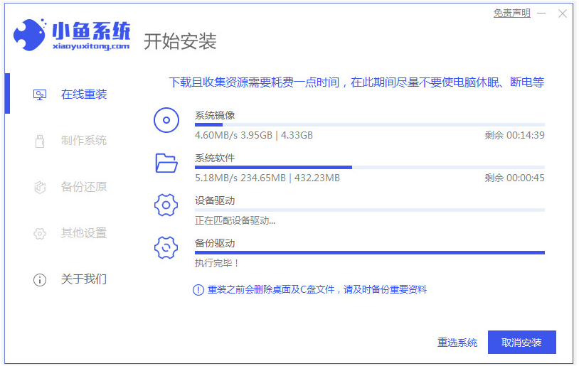 5、打开小鱼装机工具安装win10系统,安装完成后重启电脑。
