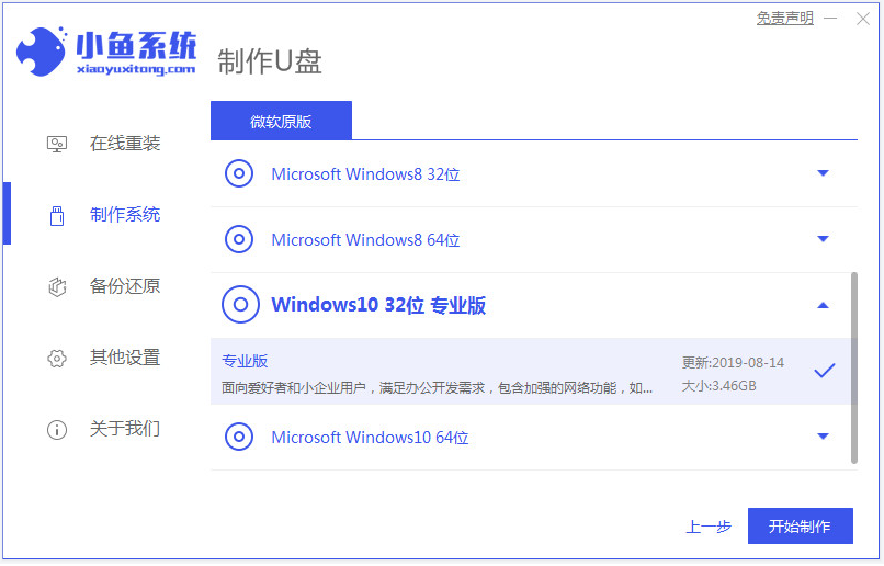1、电脑装好小鱼一键重装系统工具打开,选择win10专业版系统点击安装此系统。