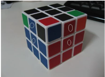 四侧面顶层两边方块对位,指的四侧面上层两角的方块归位,归位并不是指颜色要对上,只要这块的颜色和所在的三个面的颜色相对应就行。